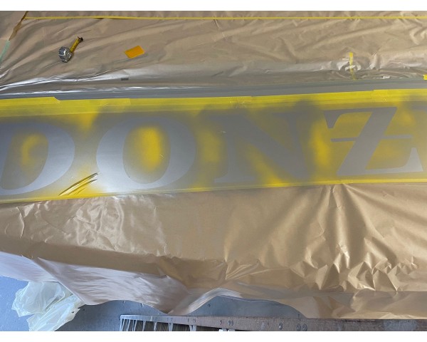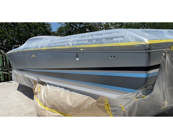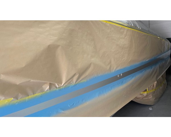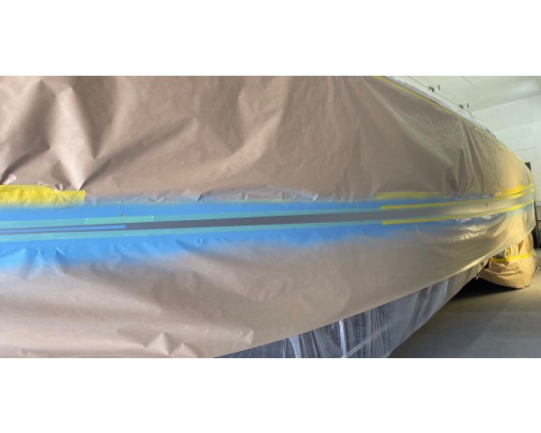 Lots of masking, lots of colors and almost ready for the final sand and clearcoat. Please check back soon for the final pictures and delivery. We love making your out of date classic into a new looking vessel and a fraction of the price.