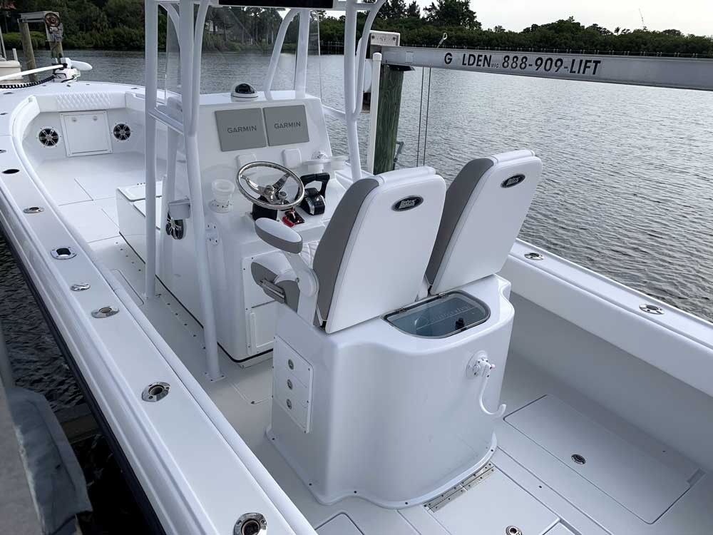 Our baitwells are customizable, certain models can be adjusted for height. All models come available in any color, even metallic and pearls. We offer an array of custom built aluminum seating and footrest options, as well as upholstery of your choice.